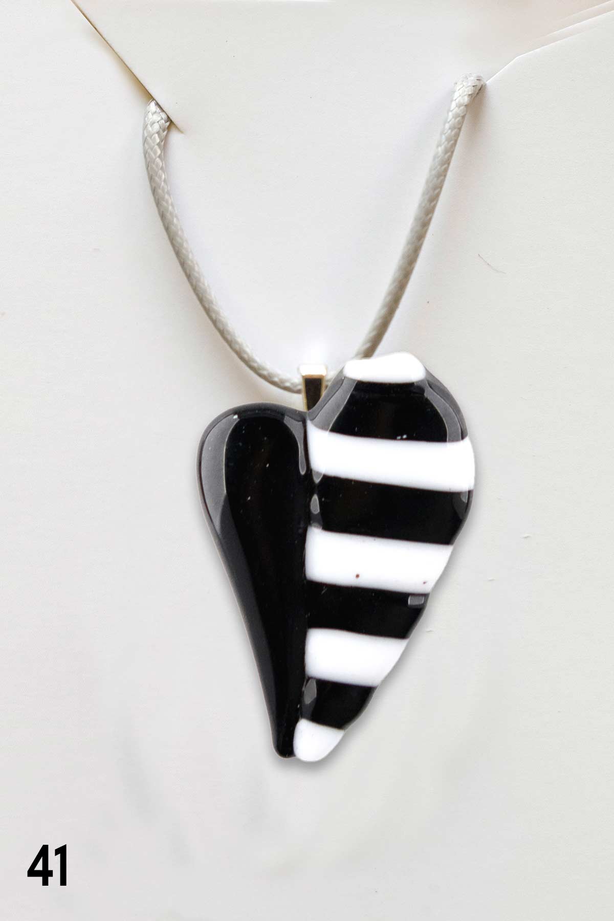 🖤🤍 Fused Glass Necklace #41 – Black & White Stripes