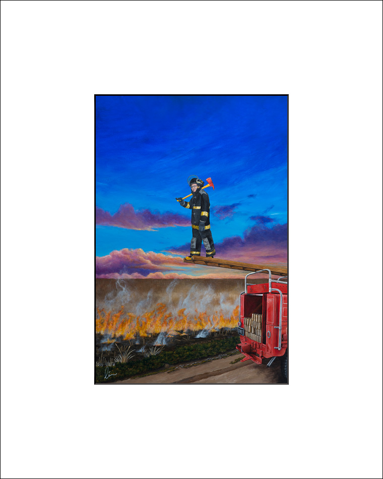 Here’s a signed. matted limited edition print showing “The Journey of the Fireman ”